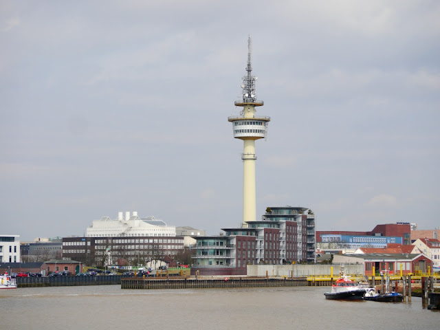 Kurz darauf stehen wir vor einer Zugbrücke. Die Schranke ist runter und die Ampel auf Rot. Ich schalte unsere neue Bordkamera (Billiger Action-Sch... aus China) ein um einen Film von der Brücke zu machen und steige aus. Von hier hat man eine schöne Aussicht auf Bremerhaven.